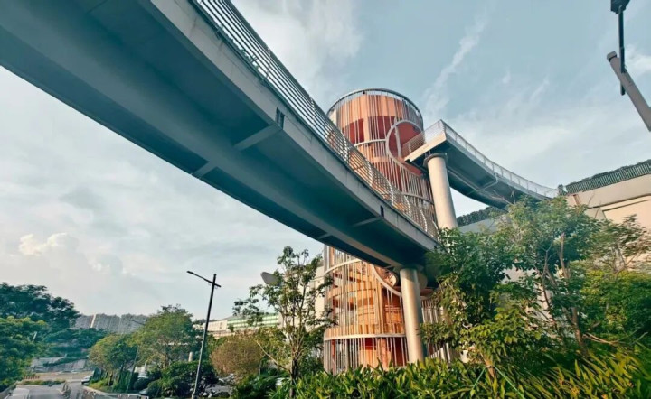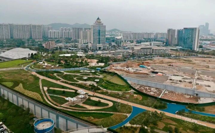 开发商为了抵消高速噪声对小区居民的影响,在京港澳高速上修建了一个上盖公园,整个公园的面积达到了11.4万m²。